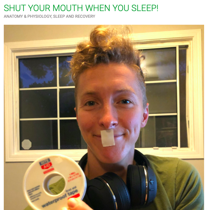 Aujourd’hui, on vous partage cet article de CrossFit Invictus proposant de tenter de respirer par le nez uniquement, durant la nuit, en mettant un bout de collant sur sa bouche.